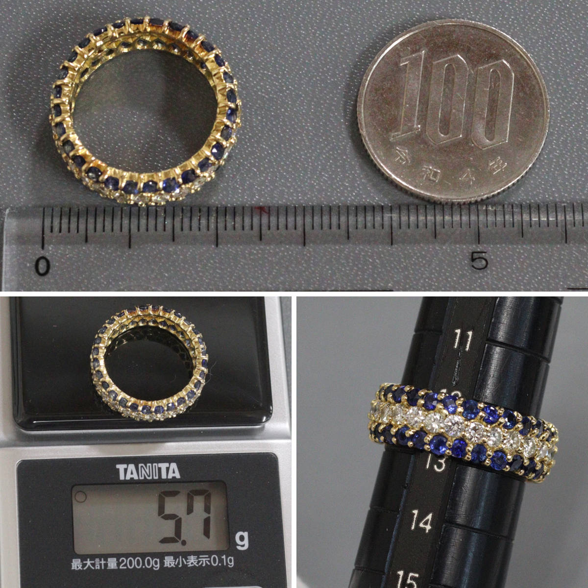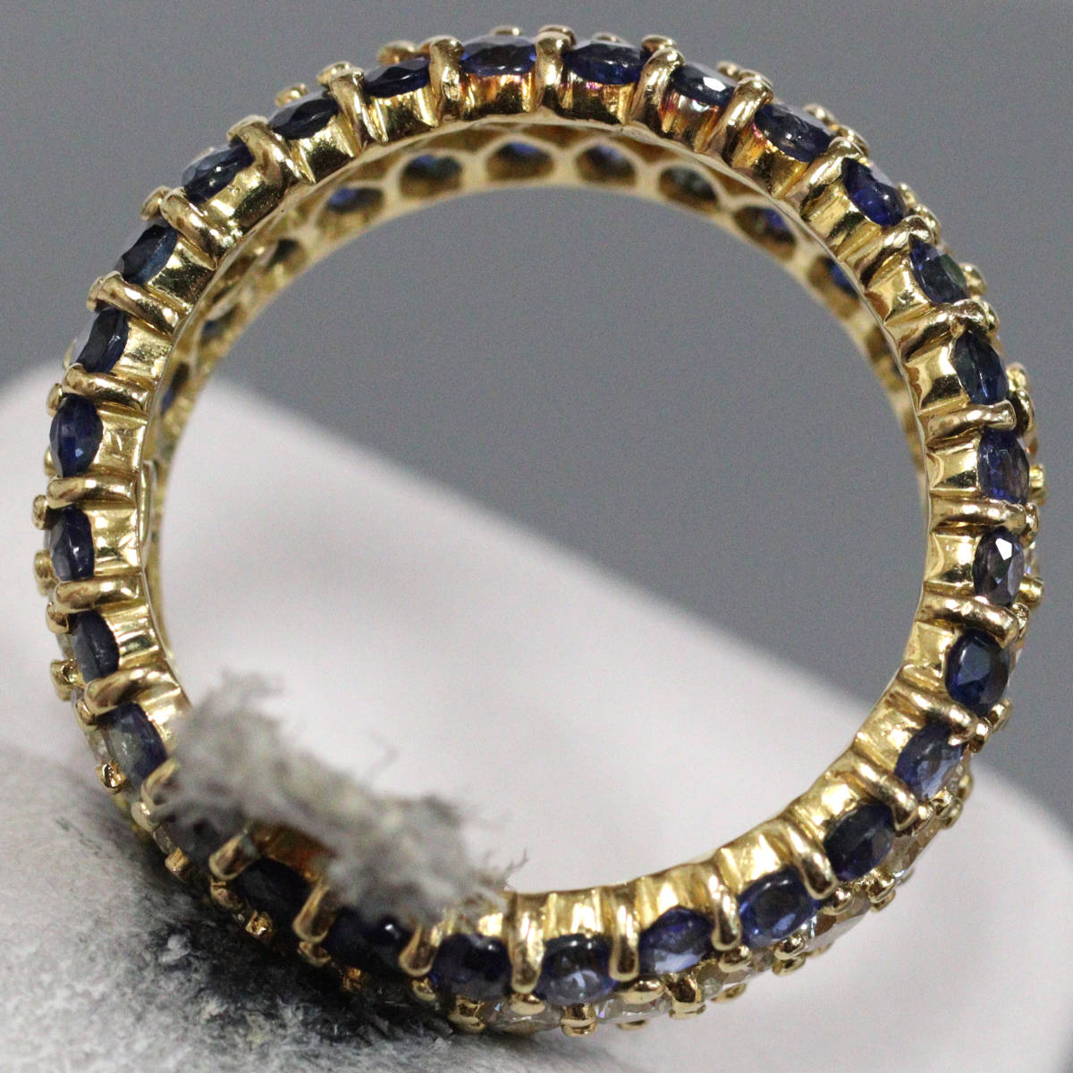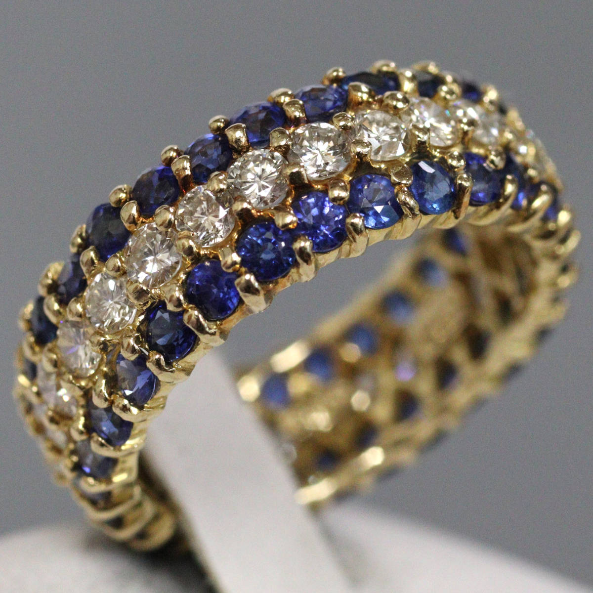 サファイアの間にダイヤモンドがセットされたフルエタニティリングです。