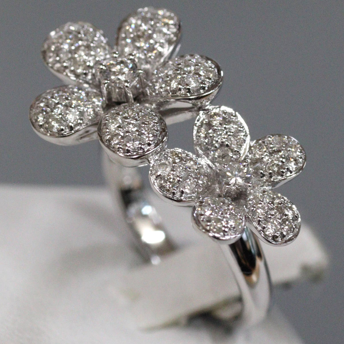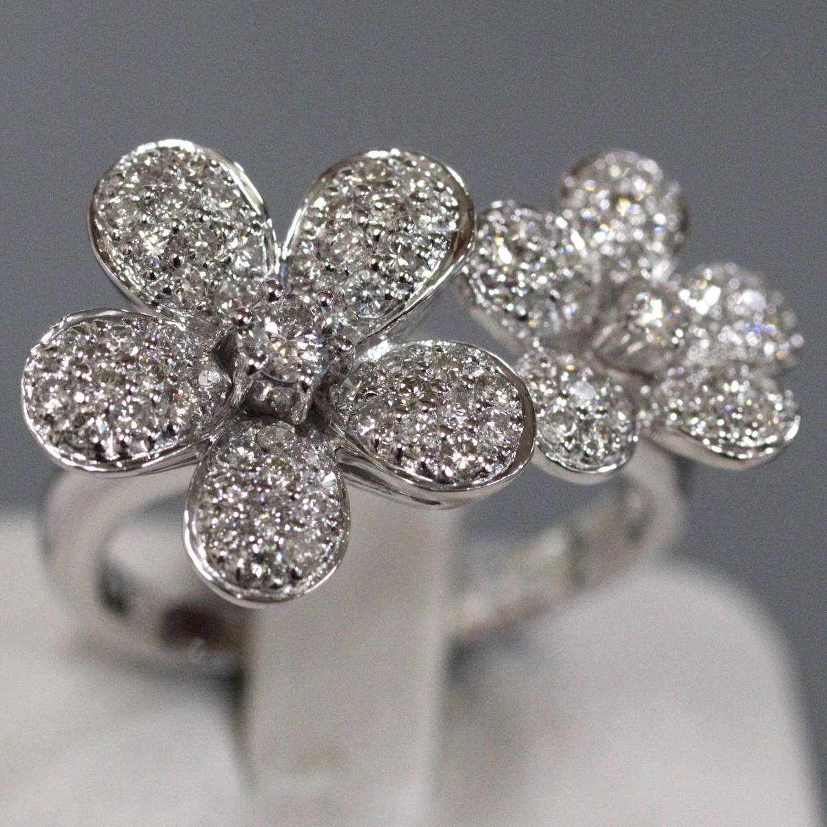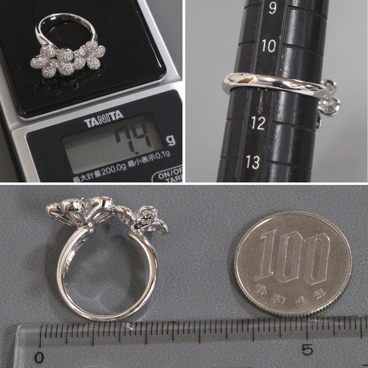 K18WGダイヤモンドリング フラワーモチーフ D0.76 7.4g #11