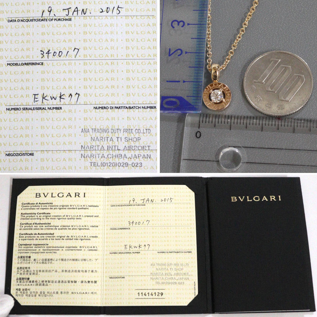750PG ブルガリブルガリ ネックレス 1PD 9.9g 45cm(340017)保証書