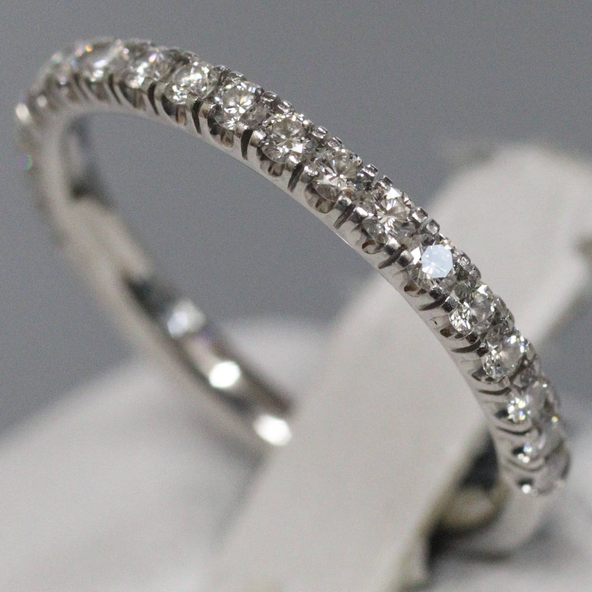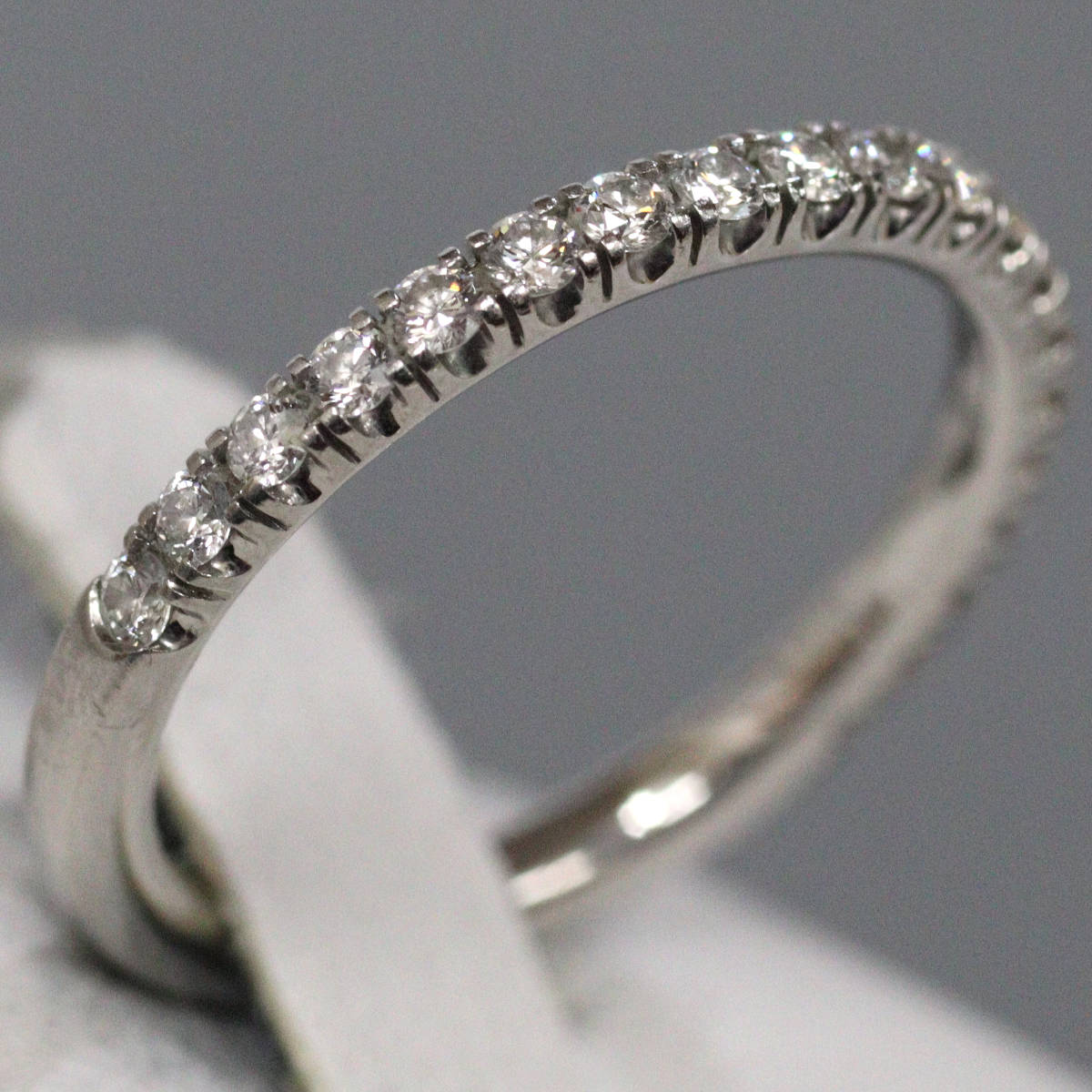 照りよく輝く良質な20石のダイヤモンドがセットされたハーフエタニティリングです。