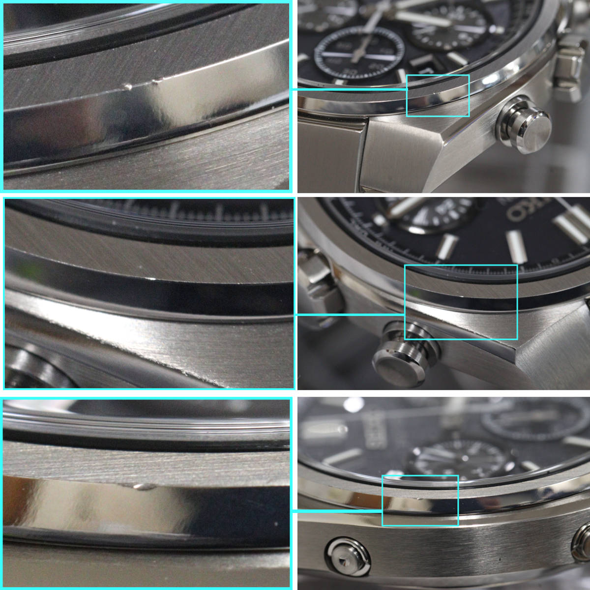 2時・5時・9時位置のベゼルにわずかに欠けがあります。