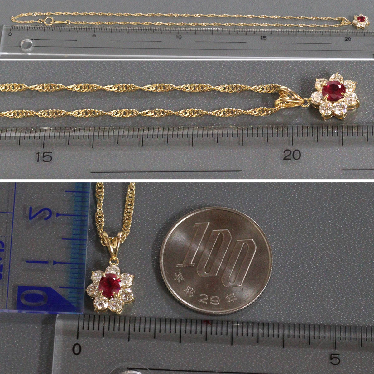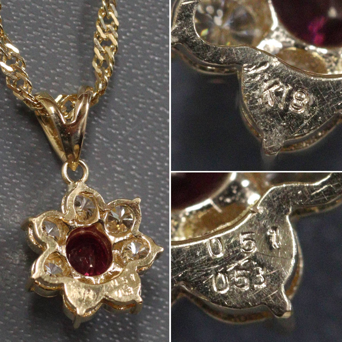 K18ルビーダイヤモンドペンダント R0.51 D0.53 3.9g 40cm ソーティング