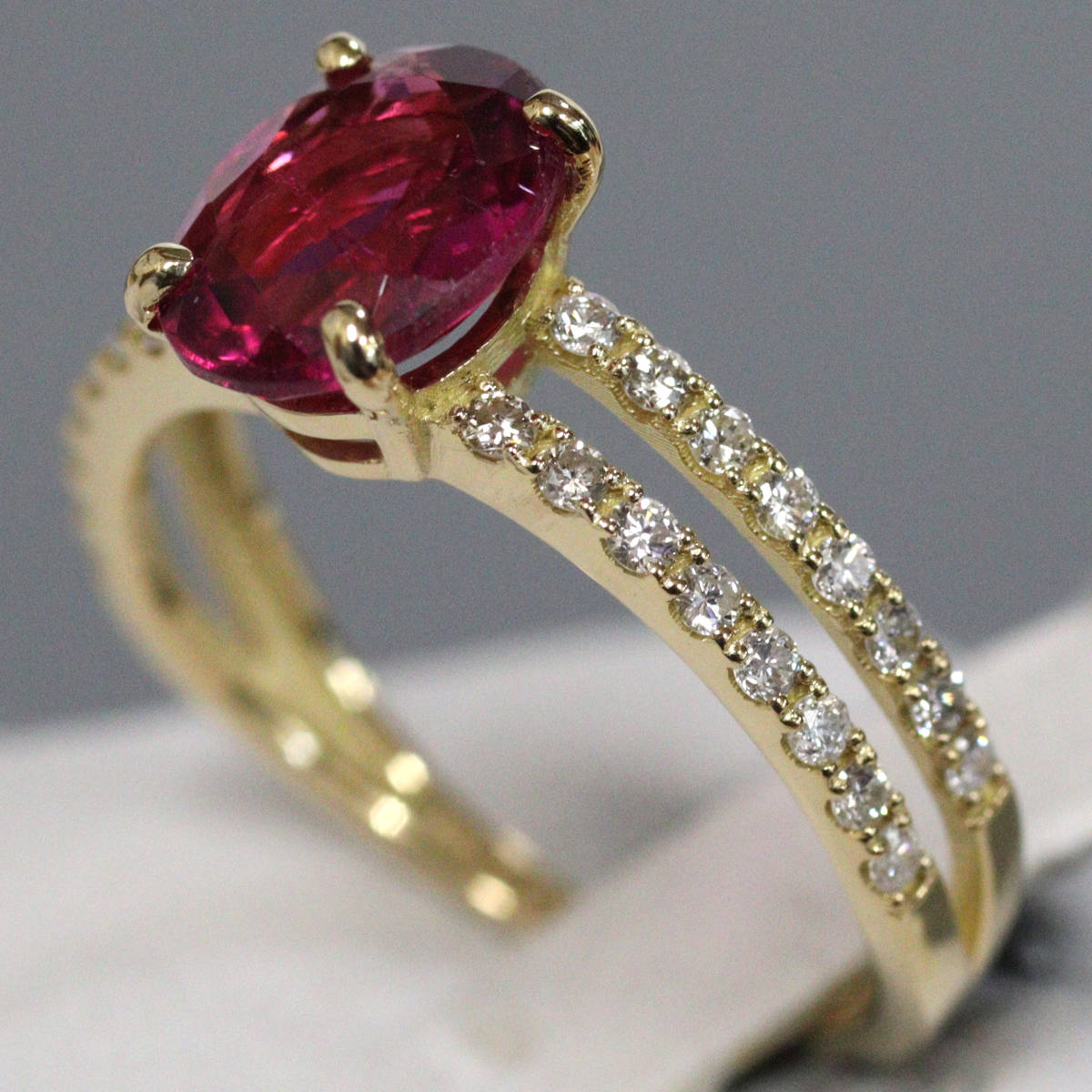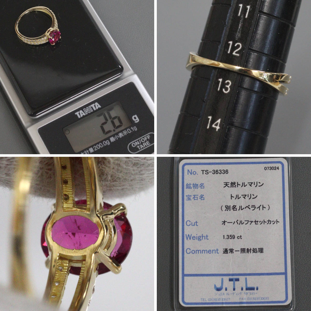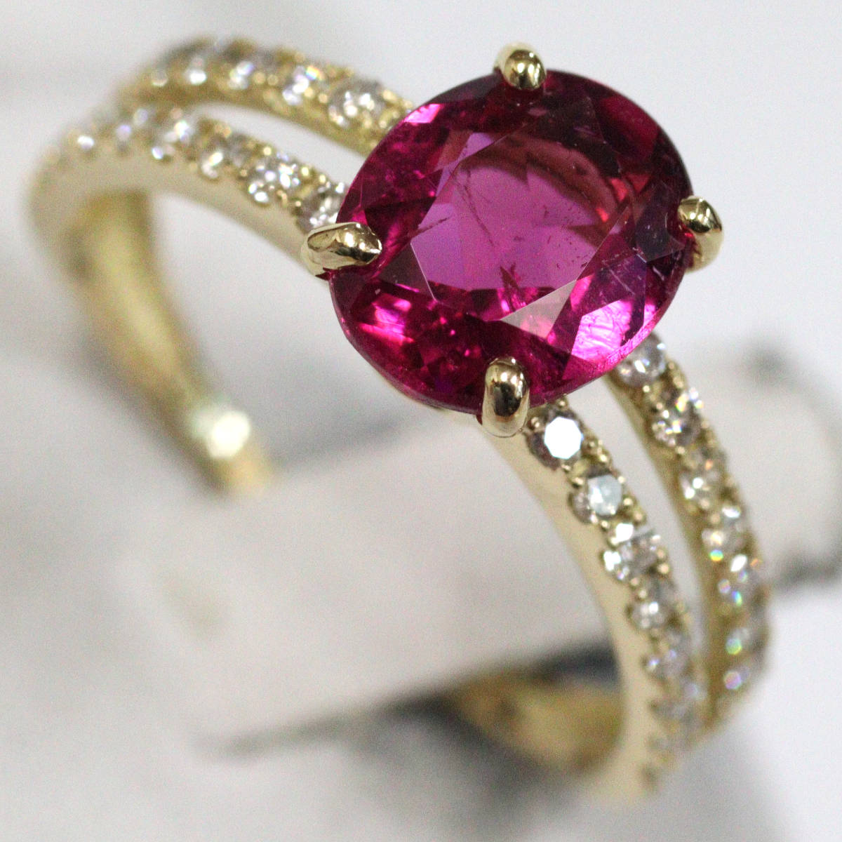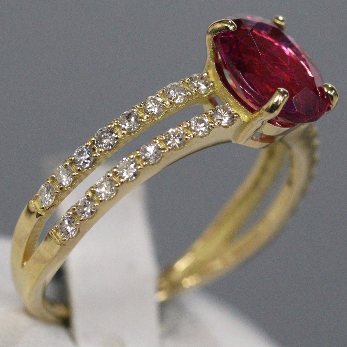 K18ルベライトダイヤモンドリング 1.359 D0.32 2.6g #12 ソーティング