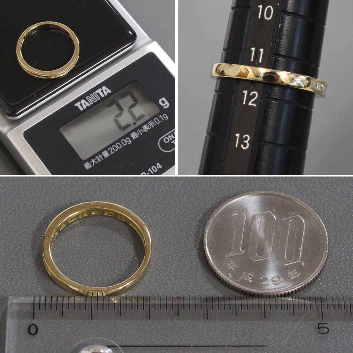 K18バゲットカットダイヤモンドリング ハーフエタニティ D0.33 2.2g #11.5