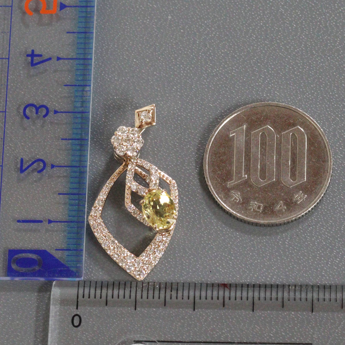 K18PGイエロートルマリンダイヤモンドペンダントトップの中古品です。