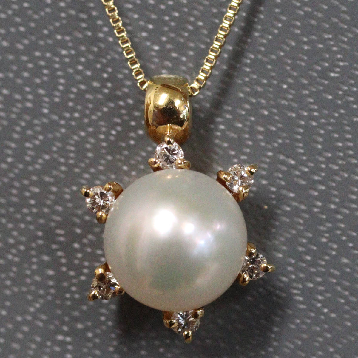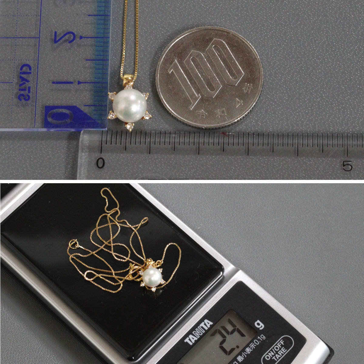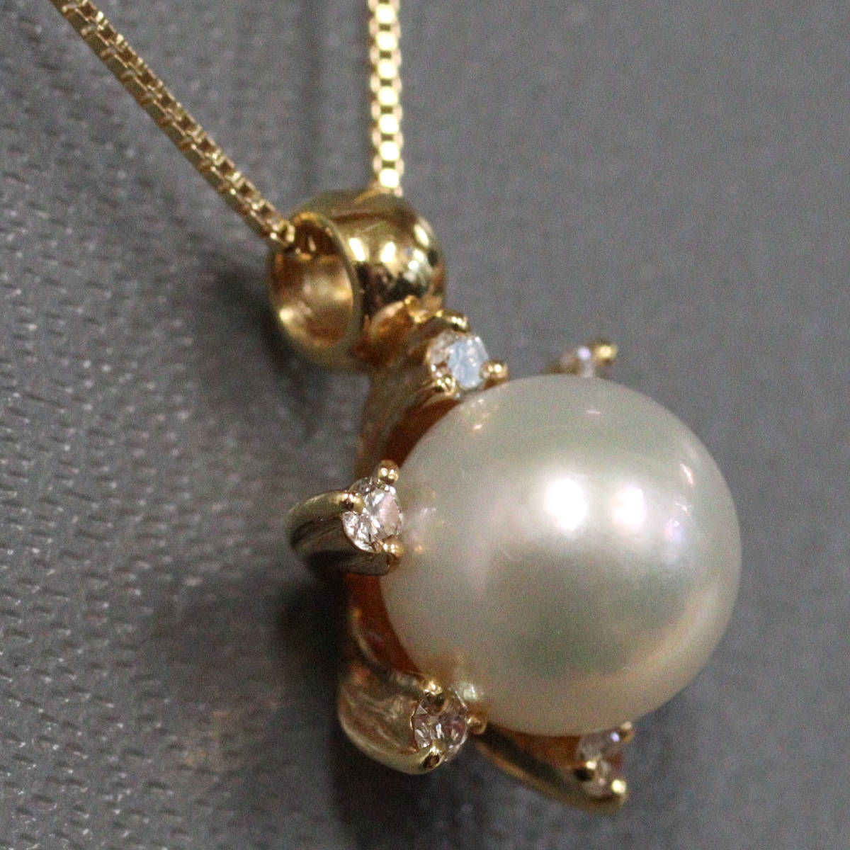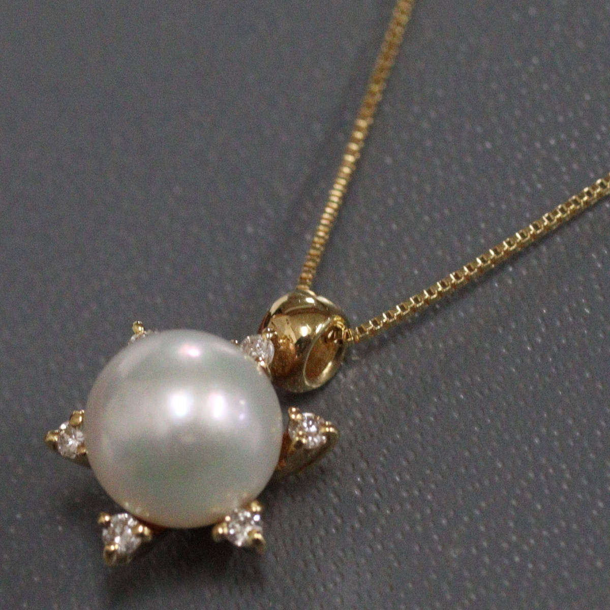 K18パールダイヤモンドネックレス D0.08 2.4g パール6.9mm 44cm